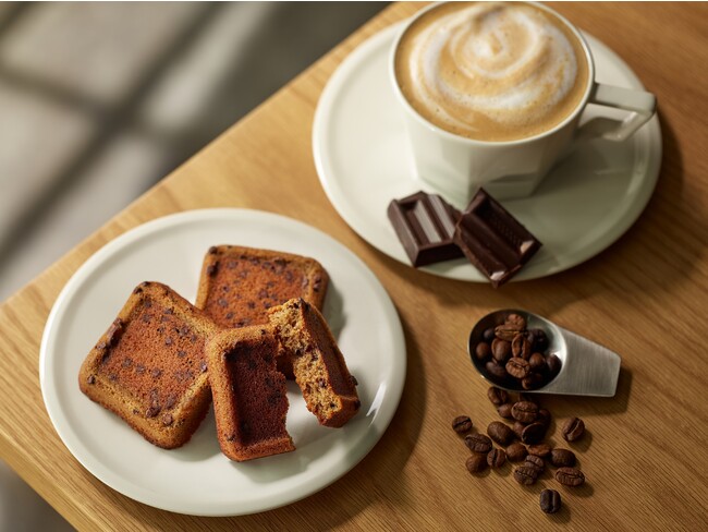 チョコレートのコクと華やかなカフェラテの薫りを丁寧にそして優しくフィナンシェにとじ込めました。苦みをおさえた、とても食べやすい上品なお味です。
