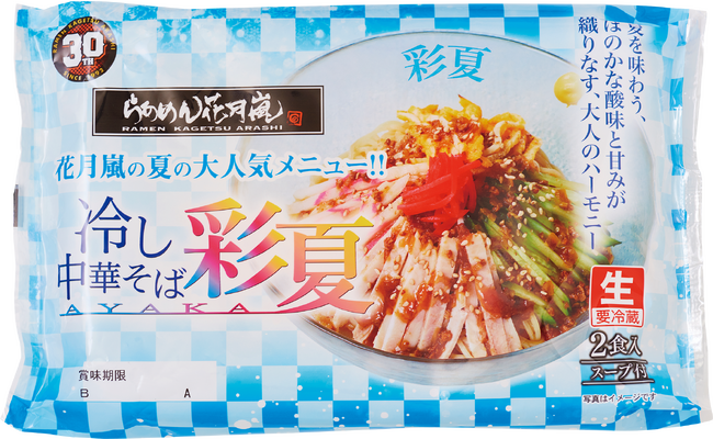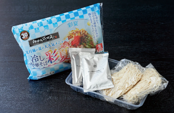熱烈なファンの支持により“夏の定番”として不動の地位を確立した大人気メニュー「冷し中華そば 彩夏」。ご家庭で楽しめるように袋麺(チルド)にアレンジされた夏季限定商品です。