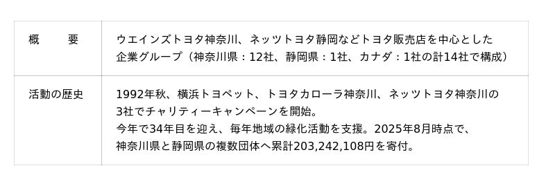 2025年10月1日(水)から12月26日(金)までの3か月間、神奈川県および静岡県の緑化推進を目的とした「2025ウエインズ グリーンアップキャンペーン」を実施いたします。