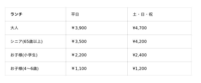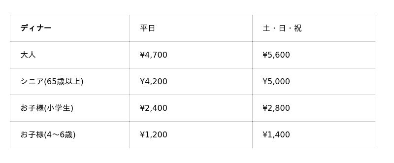 ※料金には消費税及びサービス料が含まれております。