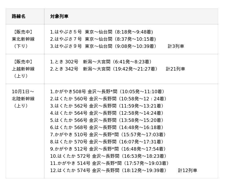 ?販売対象列車