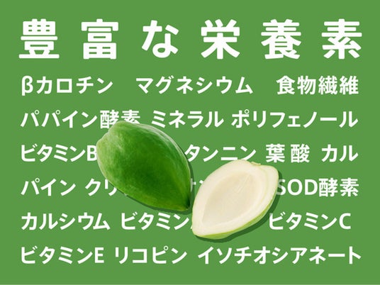 ◆青パパイア青果酵素やビタミンCをはじめ栄養素を自然のまま摂取可能。青臭さが少なく食べやすい風味で、生野菜感覚でたっぷり食べられる。加熱調理すれば甘みや旨みも引き出せる。