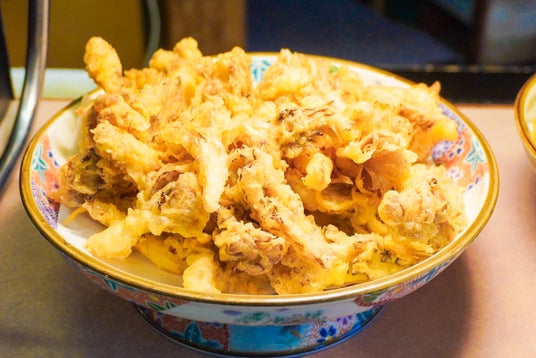 季節の天ぷら、揚げたてのマイタケの天ぷらが登場!