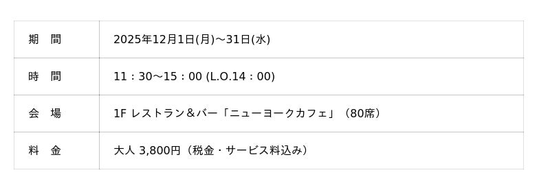 オリエンタルホテル広島(所在地:広島市中区田中町6-10)は、広島を拠点に活躍する3名の女性起業家と共同開発した「デザートブッフェ付き“ご褒美”ランチ」を、1F「ニューヨークカフェ」にて2025年12月1日(月)~31日(水)の期間限定で提供いたします。