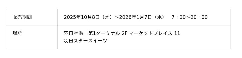 また、2025年10月8日(水)~2026年1月7日(水)の期間にて、羽田空港に催事出店いたします。