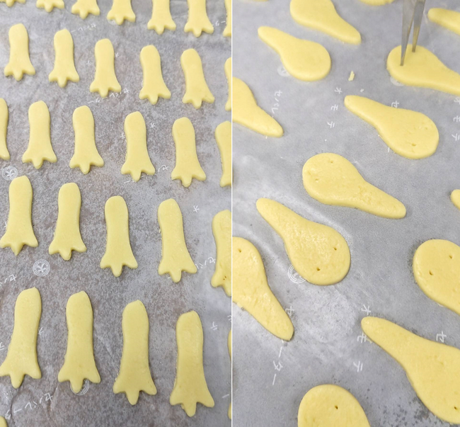 サブレと和菓子の浮島で食感を出し、カメの姿を表現した愛らしい品。カメの頭、しっぽ、手足などのパーツは別添えになっており、お好みでモンブランに差し込んでください。サブレのザクザクと浮島のねっとりした舌触りが他にない味わいになっています。