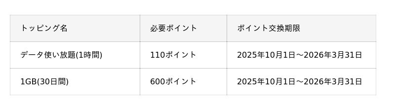 povo2.0のデータトッピングは、プロモコード形式で提供されるため、ユーザーは好きなタイミングで利用可能です。たとえば、ゲームや動画視聴、SNSを楽しみたいときには「データ使い放題(1時間)」、普段あまりデータを使われない方やもしものギガ不足に備えたい方は「1GB(30日間)」をチャージするなど、貯めたポイントを使ってpovo2.0を今ご利用の回線のサブ回線として、日常のさまざまなシーンで便利に利用できます。