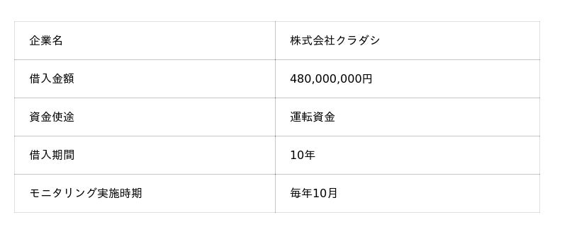 このたびのポジティブインパクトファイナンスの締結は、クラダシの企業活動が社会にポジティブな影響を生むものとして評価いただき、実現したものです。本ファイナンスで調達した資金は将来の事業に投資し、事業成長の加速と社会的価値の創出の両立に取り組むとともに、ステークホルダーの皆さまにその姿勢をお示しし、持続可能な社会の実現に向けた取り組みを推進してまいります。