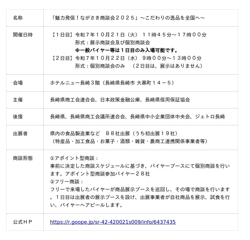 (ながさき商談会2025来場お申し込み:https://forms.gle/v7LEjd6LgpyPbsNC9)