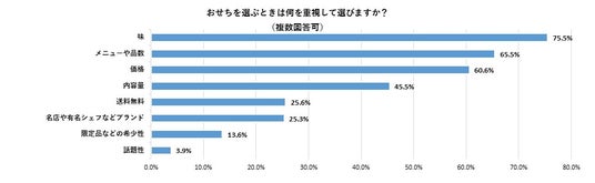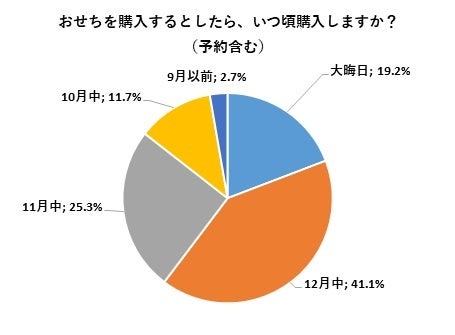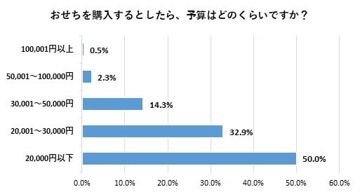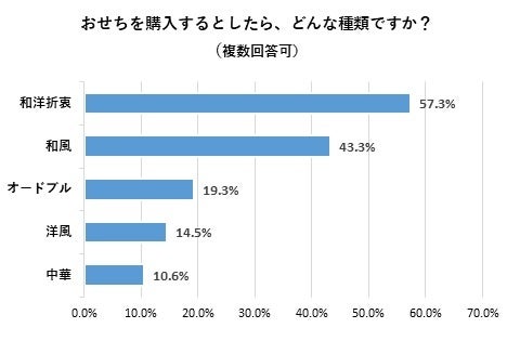 そごう・西武が8月に実施したアンケートでは、おせちを購入する際の予算は昨年と変わらないとの答えが8割強という結果でした。また、種類としては、食生活の変化に合わせて和洋折衷を、味、メニュー、価格を重視して選ぶという回答が多く見られました。