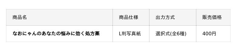 今回のコラボでは全6種類のコンビニプリントが登場!テーマは「なおにゃんのあなたの悩みに効く処方薬」です。様々な悩みと隣り合わせに生きている日々も、このなおにゃんの処方薬があれば、クスッと笑えて幸せな気持ちに!この処方薬はスマートフォンの裏に挟んで持ち歩けるサイズとなっていますので、ぜひお近くのコンビニでプリントして、なおにゃんとの生活をお楽しみください!