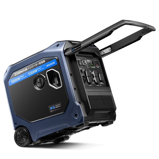 2025年に新発売され、性能と利便性の高さから高い評価を得ているモデルです。定格出力5,000W・最大出力5,300Wというハイパワーを備えながら、本体重量はわずか約45kgと、同出力帯では非常に軽量で、現場での持ち運びや移動も容易です。さらに、本体のみで100V・200Vの同時出力が可能なため、使用環境に応じた柔軟な対応ができ、防災・屋外イベント・業務利用など幅広いシーンで活躍します。