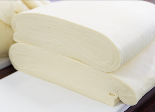讃匠の仕入れ生うどんにこれまでの麺質より、数段ランクアップした商品が生まれました。「匠の生うどん たまはがね」です。新しい生うどん「たまはがね」は、鍛えの工程に製麺機シェアNo.1の大和製作所が新開発したフットプレス機を使用し、これまでにない複雑な製法が可能となりました。他社では真似のできない144層(弊社通常麺の18倍)の生地からなる独自食感を生み出し、その生地の多重層を絶妙にコントロールする技術も獲得。