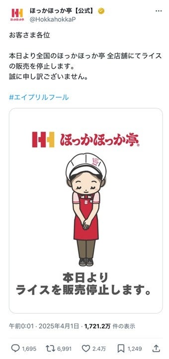 ほっかほっか亭公式Xより