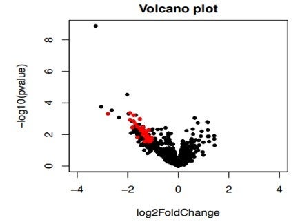 図2 pDC活性の高低と関連のあるノンコーディング RNA (赤いプロット)