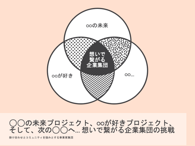 我々は、想いで繋がる企業集団の形成に向けて、「○○の未来プロジェクト」「○○が好きプロジェクト」に続く『○○プロジェクト』を公募(https://prtimes.jp/main/html/rd/p/000000459.000018590.html)してまいりました。