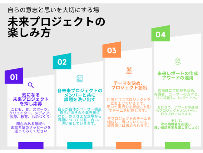 コミュニティ活動を大切にしていることもあり、未来プロジェクト同士の連携も促せるよう、統合支援する会社(https://prtimes.jp/main/html/rd/p/000000366.000018590.html)の設立も準備中です。どんな領域で立ち上げを準備中なのか、下記をご覧いただけたら幸いです。
