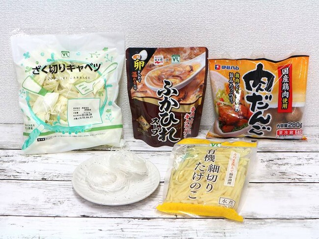 VLざく切りキャベツ、VLふかひれスープ、肉だんご、春雨、VL有機細切りたけのこ
