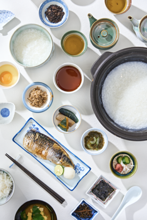 炊き立てのコシヒカリと少量多品目で構成した満足度の高い“朝定食”をはじめとして“朝粥セット”やコーヒーをご注文のお客様にはトーストをお出しする“モーニング”など、様々なメニューをご用意しています。じっくりと炭火で焼き上げられた干物、旬の野菜で作られた煮物、昆布と鰹で丁寧に出汁をとった本格派の味噌汁など富山の食材から作られた満足度の高い朝食を、地域の皆様に楽しんでいただきたいと考えています。
