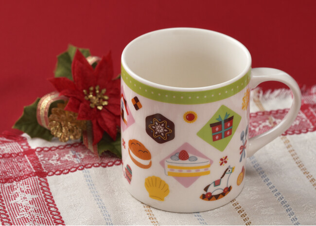 キュートなスイーツを散りばめた、イラストレーター・いわにしまゆみさん描き下ろしのオリジナルマグカップ。