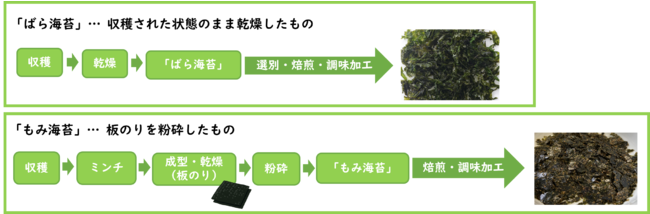 一般的に販売されている板海苔を粉砕した「もみ海苔」とは異なり、ミンチカットをせず海苔の