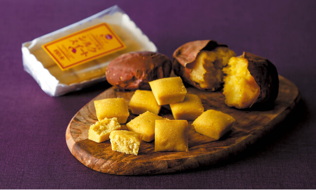「キューブフィナンシェ」はしっとりとした口当たり、キューブ型の可愛らしい形が女性からとても高評価をいただいております。より女性の方に手軽に食べていただきたいという思いから、今回芋栗南瓜好きが多い女性向けに、秋を感じられる”さつまいも”を選びましました。さつまいものなかでも、濃厚な甘みのねっとり系で人気の高い”シルクスイート”を使用。蜜がたっぷりでねっとりみずみずしいシルクスイートは、キューブフィナンシェをよりしっとりとさせ、ひとくち頬張ると1個に濃縮された密度の濃いシルクスイートの甘さが口いっぱいに広がります。まるで芋ようかんやきんつばを食べているかのようななめらかな味わいです。