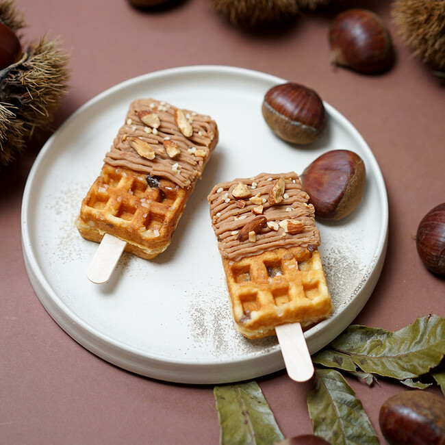 『ホクホク!秋のあったか京ワッフル ~モンブラン~』は「マロンモンブラン」から着想を得た秋限定商品。秋の味覚 "栗" を贅沢に使用した、しっとり濃厚なフレーバーです。