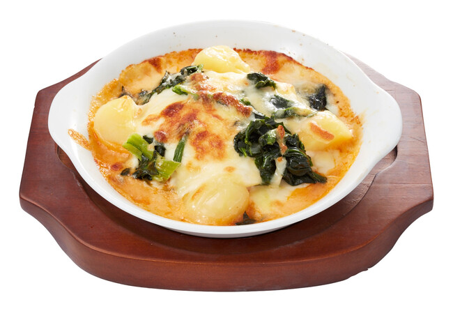 食物繊維が多くヘルシーな大豆ミートを使った新商品「大豆ミートとほうれん草のラザーニャ」。熱々のとろ~りチーズやもちもちのラザニア、ほうれん草などがたっぷり入った食べ応えのある一品です。
