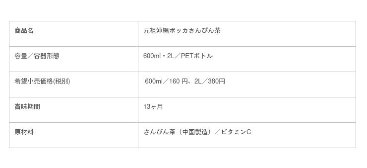 1993年に当社が日本初の缶入りさんぴん茶として販売を開始し、沖縄県民の皆様にご愛飲いただいている「元祖 沖縄ポッカさんぴん茶」が、今年発売30周年を迎えました。沖縄でさんぴん茶が広く飲まれるようになったのは1900年代以降と考えられており、古くから慣れ親しんだお茶ではあったものの、当時は家庭や食堂でやかんに沸かしたものを、湯呑やコップで飲むことがポピュラーでした。しかし天ぷらやチャンプルー、脂っこい沖縄料理のお供にはこのさっぱりとした口当たりのお茶が欠かせない存在だったことから、お客様がより手軽に様々な場面で飲用できるよう、当社は缶入りの商品として発売しました。確かな品質をお届けするため、こだわりの茶葉を使用し、旨みと渋みのバランスにこだわった、豊かな香りが特徴です。その後容器容量のラインナップを増やしながら成長し、沖縄行事、家族団らん、うちなー弁当のお供や、部活動の後など、県民の皆様の生活とともに30年歩んできました。