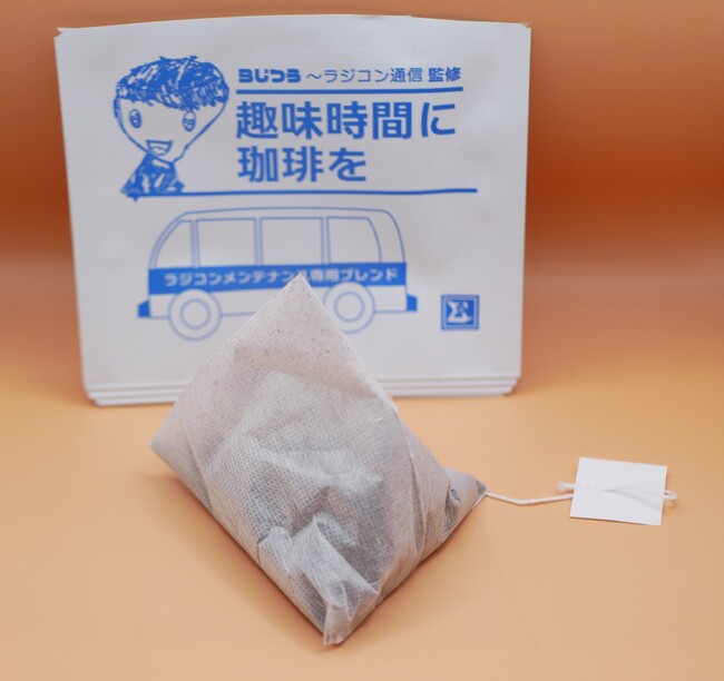 また、ラジコンメンテナンス中に手軽に珈琲を用意できるように、ティーバッグタイプを採用。そして、窒素封入パッケージを施すことにより、製造から1年間という長期の賞味期限を実現いたしました。