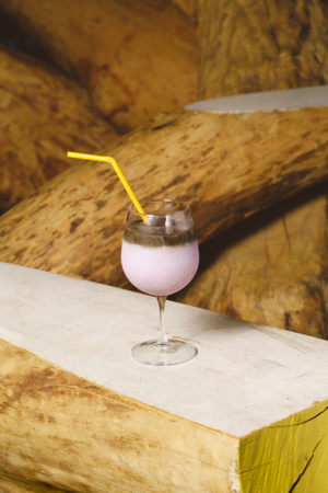 チーズミルクに安納芋&紫芋シロップを合わせた飲むチーズケーキドリンク