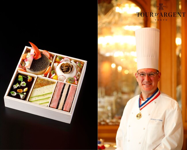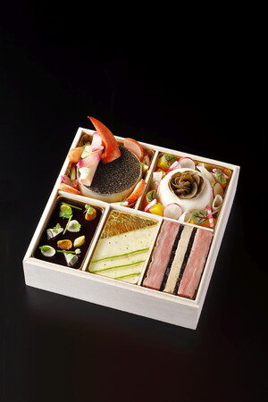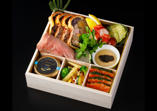 今年初の試みとして、フランス料理「トゥールダルジャン 東京」に所属し、2019年にフランス料理界最高峰の称号"M.O.F."(フランス国家最優秀職人章)を受章したエグゼクティブシェフ ルノー・オージエが手掛ける豪華食材をあしらった一段をご用意しました。