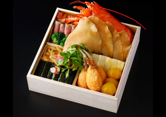 ココット仕立てにしたフォアグラのテリーヌや、オマール海老、キャビア、ハーブでマリネしたサーモンなどが楽しめる洋風の特製おせち。