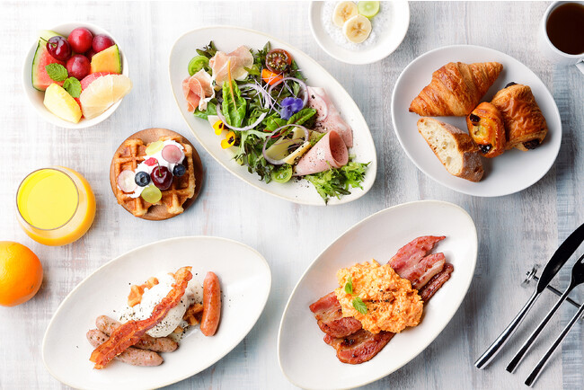 クロワッサン生地を使用したワッフル(クロッフル)にポーチドエッグをのせ、濃厚チーズソースで楽しむ「クロッフル ベネディクト」や、シェフが目の前で仕上げる三肉汁たっぷりの「肉厚ビーフバーガー」、オレンジを丸ごと搾って作るフレッシュオレンジジュースなど、心躍るメニューの数々を取り揃えました。さらに福岡名物である「博多とんこつラーメン」、「博多がめ煮」、「博多辛子明太子」など、福岡の魅力が詰まったご当地メニューもお楽しみいただけます。また2022年10月15日(土)~11月30日(水)までの期間は、オープン記念として通常価格の30%OFFでご提供いたします。(通常価格;2,970円 / オープン記念価格30% OFF:2,079円)圧倒的な品数とおいしさを追求した当ホテルのこだわりの朝食ブッフェをぜひご堪能ください。