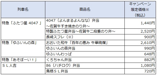 < ご参考:対象列車および商品名 >