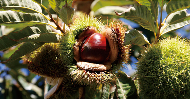 小布施は昔から栗の産地として知られており、栽培は室町時代からすでに始まり、江戸時代には将軍家に献上し、小布施栗は全国的に名を馳せていました。町を流れる松川の水質が栗の生産に適していたと言われています。その品質は今も変わることなく、数ある栗菓子屋さんが味を競い合って、小布施の栗菓子は全国的な名産品となっています。そのはじけそうなほどツヤツヤに実った栗は、栗おこわや栗羊羹、栗かのこなどの銘菓となって多くの方に喜ばれています。また小布施は美味しい果物ができる条件がそろっています。昼夜の寒暖差、年間降水量が少ないこと。そして小布施は周りに山が少なく日照時間が長いため糖度の高い果物ができます。気候風土が生み出す美味しい栗や果物など秋の味覚が満載の小布施町とタカノフルーツパーラーのコラボレーションにより実現した、タカノフルーツパーラー本店限定の10月の小布施町フェアのメニュー紹介です。