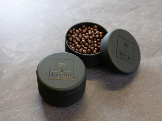 当商品は、缶を開けるとまるでキャビアのような詰め合わせのチョコレートです。シリアルの食感をアクセントに、カカオの濃い味わいを感じるダークチョコレートでコーティングされた小さなパールチョコレートとやさしい甘さに包まれたミルクチョコレートをコーティングされたパールチョコレートを丸いシックな缶に贅沢に詰め合わせました。それぞれ、黒、白のシンプルでシックなキャビア缶はギフトにも最適です。