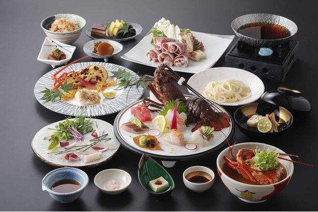 伊勢海老お造里・宮崎牛バラすき焼き・伊勢海老テルミドール・伊勢海老味噌汁など、宮崎の旬をご堪能ください。