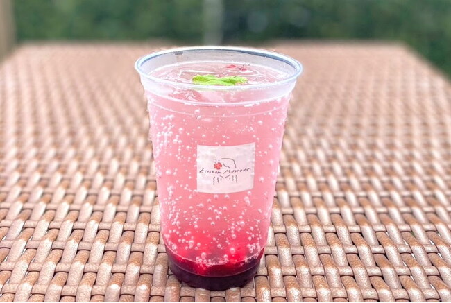 ミックスベリーのシロップが溶け込んだ爽やかな果実ソーダ。グラデーションの美しい、初秋にピッタリのソフトドリンクです。