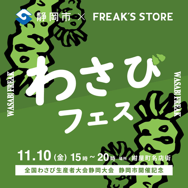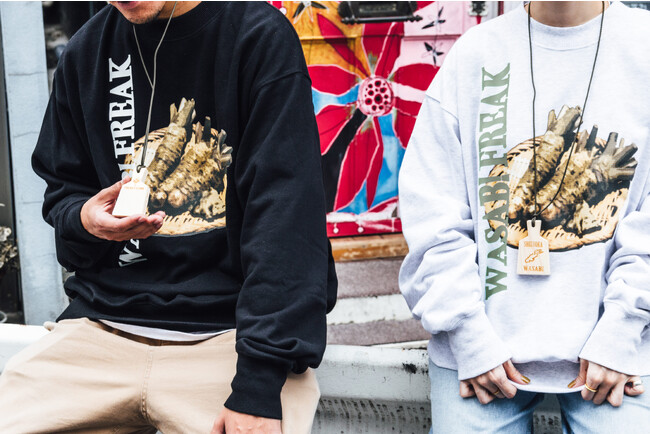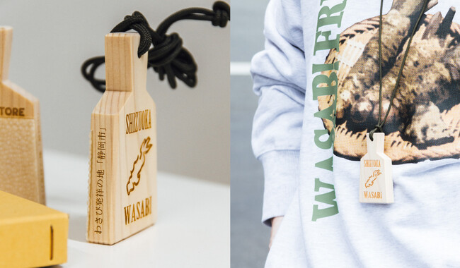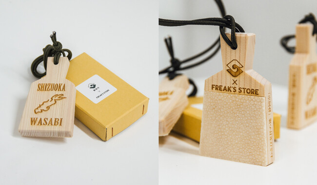 わさびの名産地であり、市として世界農業遺産に認定されているわさびを若者を中心に広めたいという想いから今回の取り組みがスタート。オフィシャルグッズはFREAK'S STOREらしいリラックス感のあるボディにわさびのイラストを落としこんだキャッチーなスウェットを販売するほか、首下げのアクセサリーとしても使用可能な特製わさびすりおろし器を製作し来場者にその場でお渡しする参加型キャンペーンも実施します。