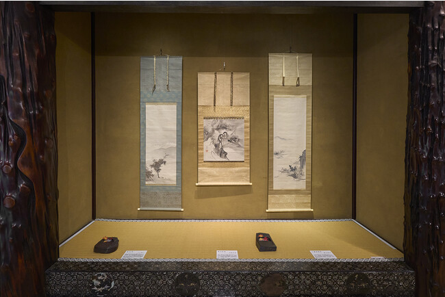 墨の濃淡や滲み、かすれなどで表現する水墨画は、その歴史や技法を知ることでより深くお愉しみいただけます。本展では、階段廊下に連なる7つの展示会場のうち最初の会場「十畝の間」にて、水墨画になじみのない方にもわかりやすく歴史や道具、技法などをご紹介するとともに、さまざまな技法を用いた作品を展示し、水墨画の奥深さへと引き込みます。