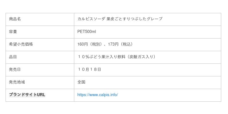 『カルピスソーダ 果皮ごとすりつぶしたグレープ』は「カルピスソーダ」に皮ごとすりつぶしたグレープ果汁をブレンドした乳性炭酸飲料です。ブランド史上最高となる果汁率10%とすることでしっかりとコクのある味わいを実現しました。