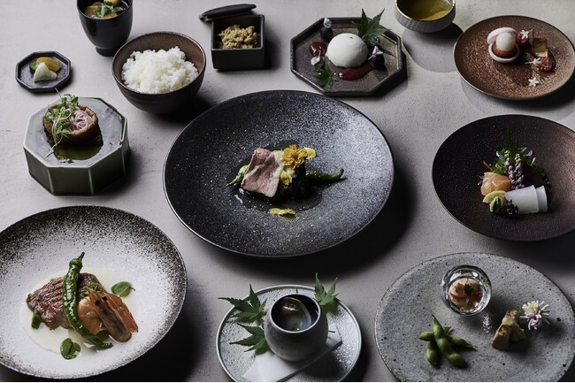 ランチ、ディナーともに3コースご用意いたしました。飛騨牛、飛騨豚、鮎などの岐阜が誇る食材をメインに据えたコース仕立てとなっております。出汁をかけ合わせ、「旨み」をベースとした逸品をご賞味ください。