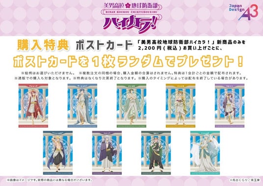 「美男高校地球防衛部ハイカラ!」の新商品2,200円(税込)お買い上げごとにポストカード(全9種/ランダム)をプレゼントいたします。