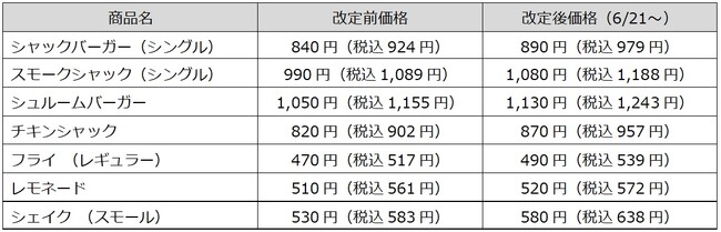 シェイク シャックでは、ホルモン剤フリーのアンガスビーフをはじめ、お客様が安心して食べられる食材を厳選して提供しておりますが、昨今の原材料費、物流費、水光熱費、人件費等の高騰を踏まえ、下記の通りメニュー価格を改定する事と致しました。