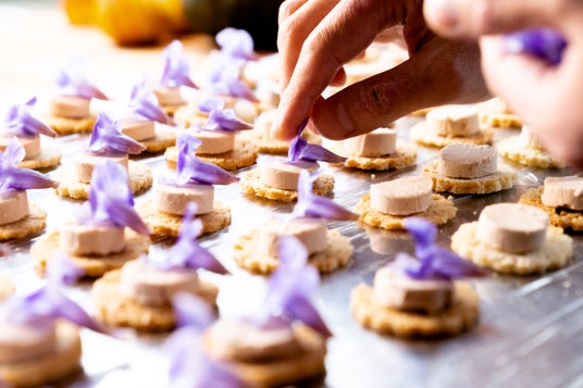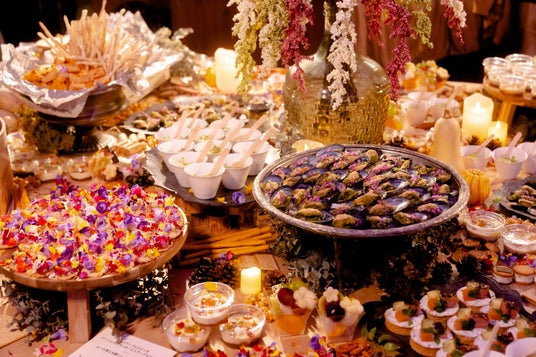 会場サイドで提携レストランのフィンガーフードを回遊式に提供。少量ずつ複数店の味を一度に楽しめます。