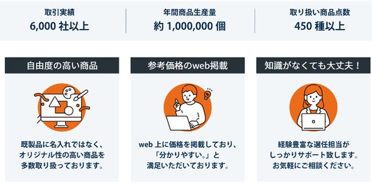 小ロット対応:50個または200個~(商品により最小ロット変動)