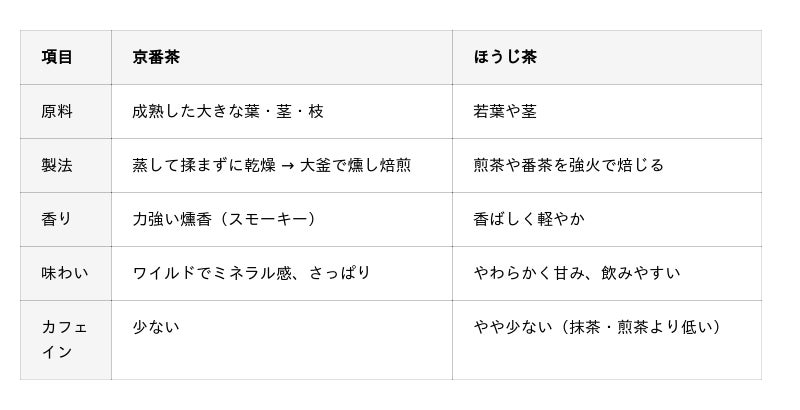 京番茶とほうじ茶のちがい(製法と香りの比較)