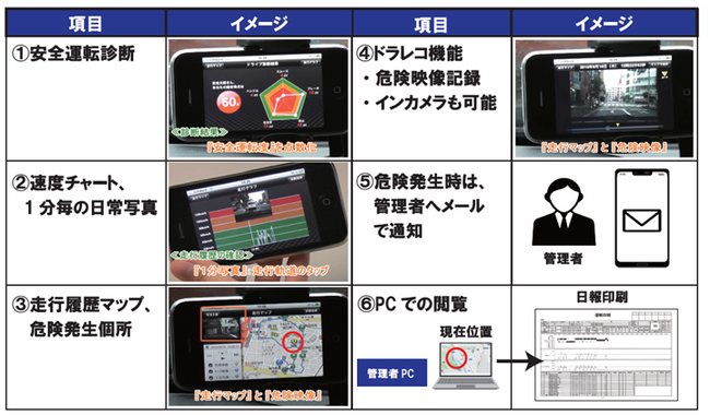 また、車両への機器の取り付けや設定は不要で、アプリケーションインストール後すぐに使用いただけます。