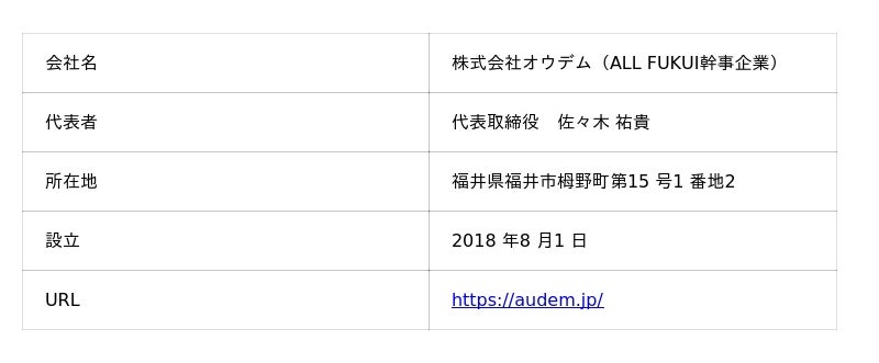 オウデム株式会社(福井県福井市・代表取締役 佐々木祐貴)は福井県内の企業4社(株式会社 第一望洋楼、株式会社 酒乃店はやし、TSUGI llc.、有限会社 藤田建築設計事務所)と共に2022 年4月からコンソーシアム「ALL FUKUI」を運営しています。